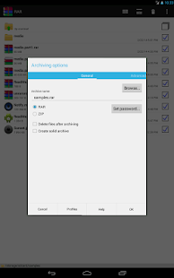 RARLAB’s RAR for Android can create RAR and ZIP and unpack RAR, ZIP, TAR, GZ, BZ2, XZ, 7z, ISO, ARJ archives. List of functions include repair command for damaged ZIP and RAR files, benchmark function compatible with RARLAB’s WinRAR benchmark, recovery record, usual and recovery volumes, encryption, solid archives, utilizing multiple CPU cores to compress data.